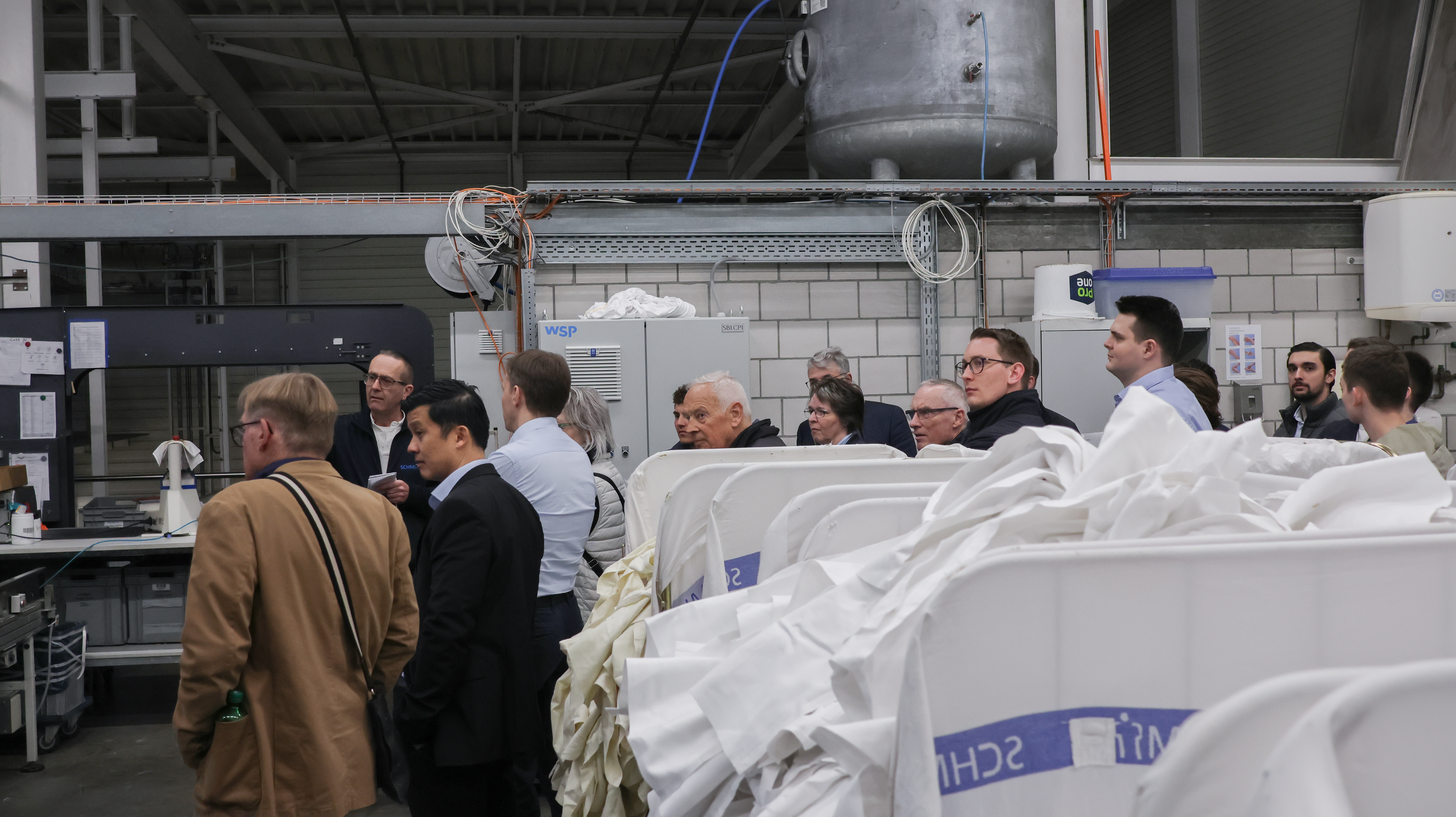 Beim Unternehmensbesuch der SCHMID Textilrewashing AG in Suhr erhielten zahlreiche Unternehmerinnen, Unternehmer und das #TeamSchoop spannende Einblicke in die industrielle Kreislaufwirtschaft. Das Schweizer Familienunternehmen wird in der sechsten Generation geführt und beschäftigt über 130 Mitarbeitende. Die Industriewäscherei ist auf die Wiederaufbereitung von Textilien spezialisiert. Der Besuch zeigte eindrücklich, wie Innovation, Nachhaltigkeit und regionale Wertschöpfung in einem KMU zusammenwirken und Arbeitsplätze in unserer Region schaffen.